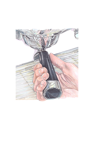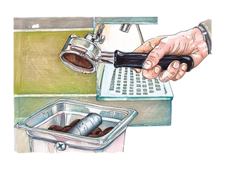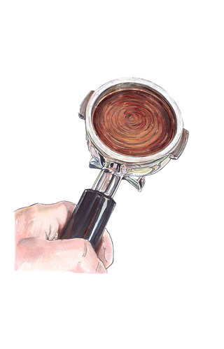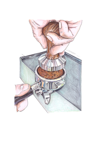Evenly press the coffee with an additional rotation of the tamper using a force of 25 Kg.