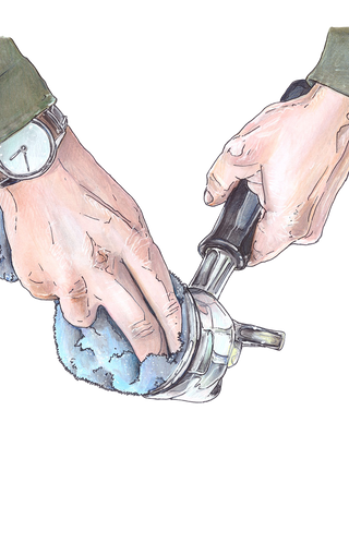 Run the water in the filter holder for a few seconds to remove the residues of the previous extraction.