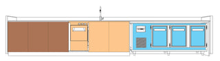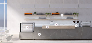 Two working stations divided in six modules to help you organize your coffee shop's operation space: front and back counter.